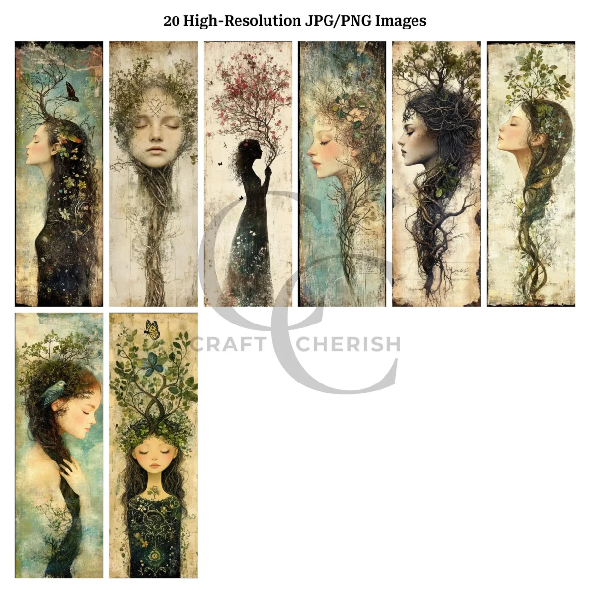 Botanical Surreal Art Bookmark Printables – Junk Journal Papercraft, Digital Download