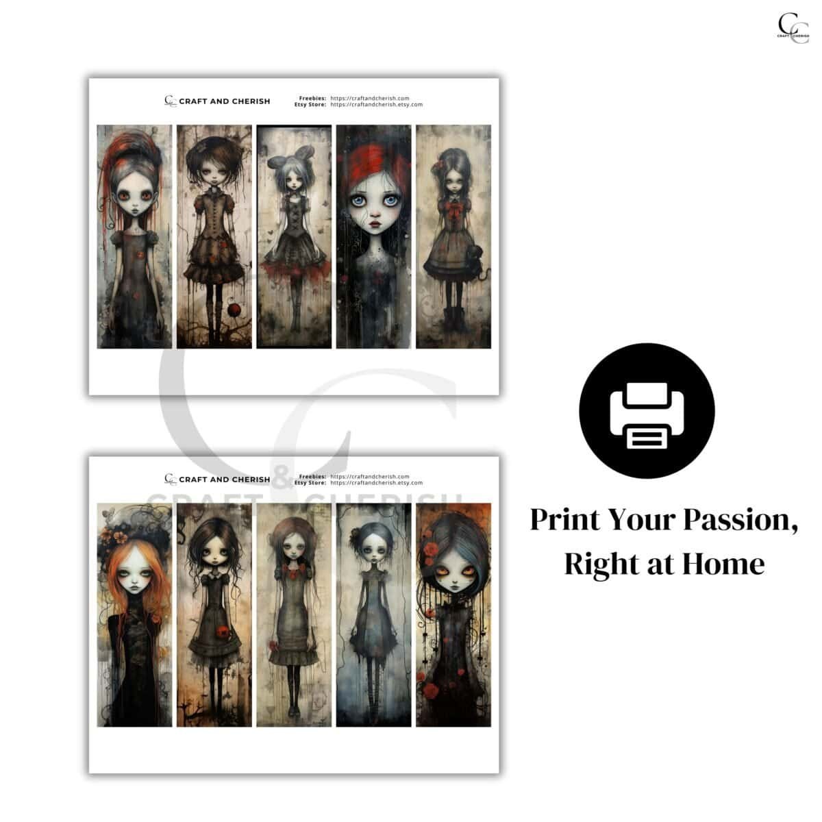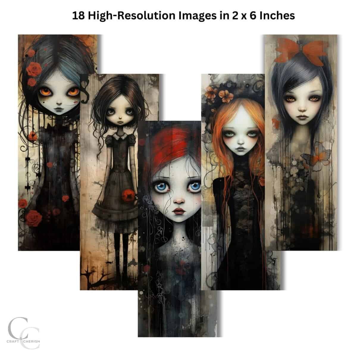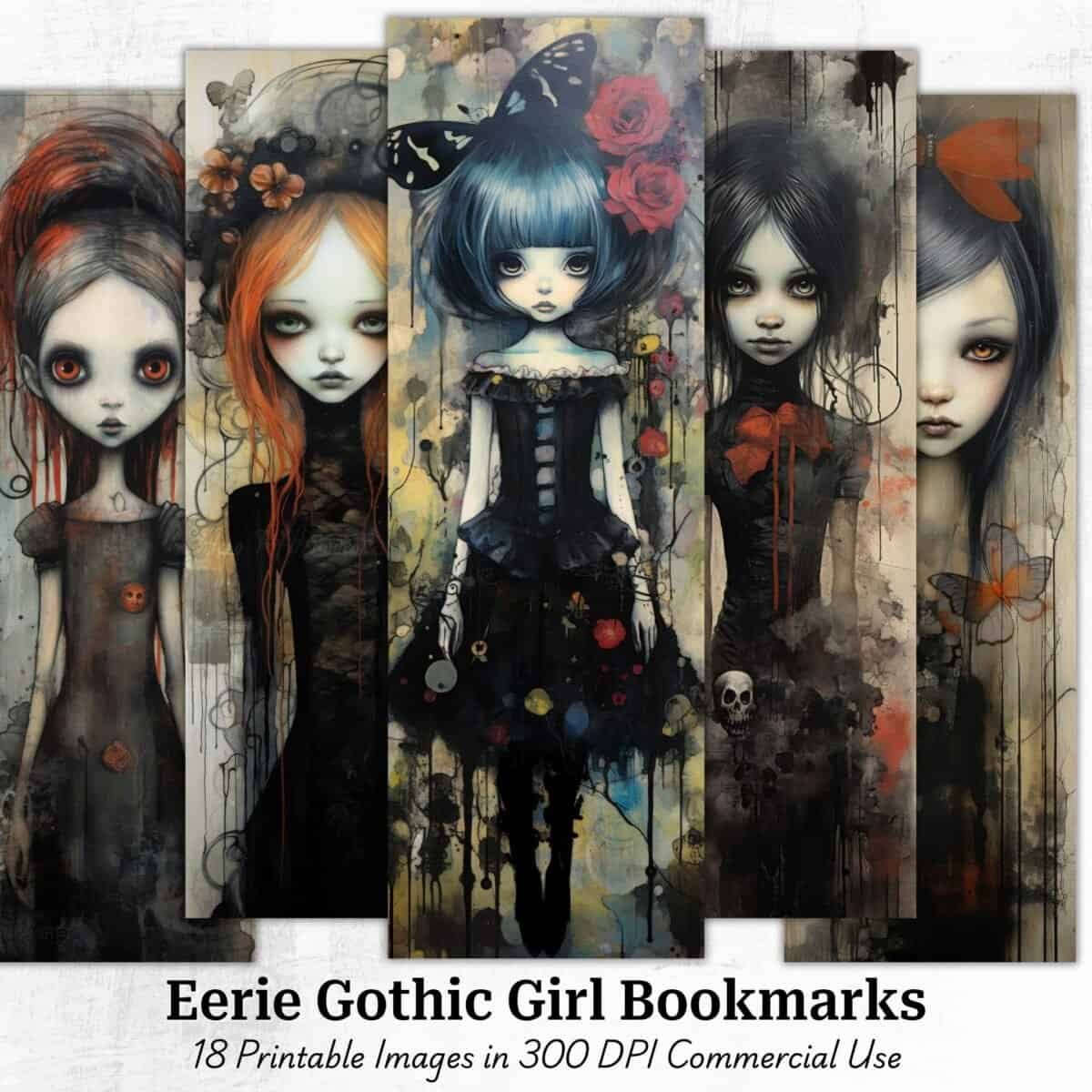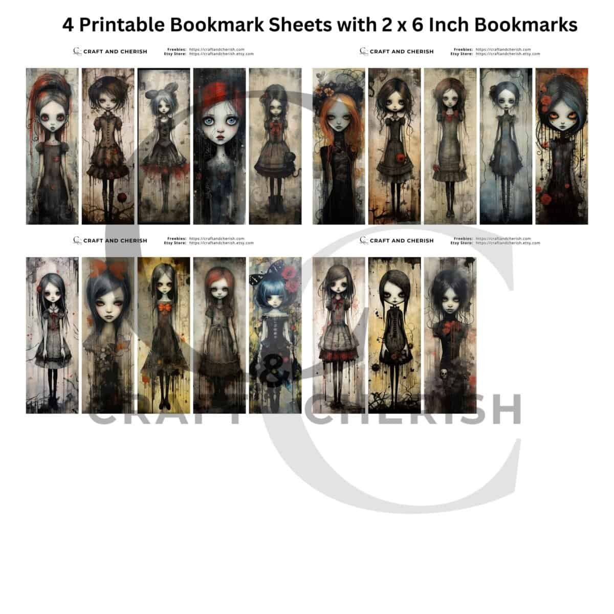 Eerie Gothic Girl Printable Bookmarks – Spooky Dark Woman Art for Halloween Junk Journals, Scrapbooks & Mixed Media Crafts (Digital Download)