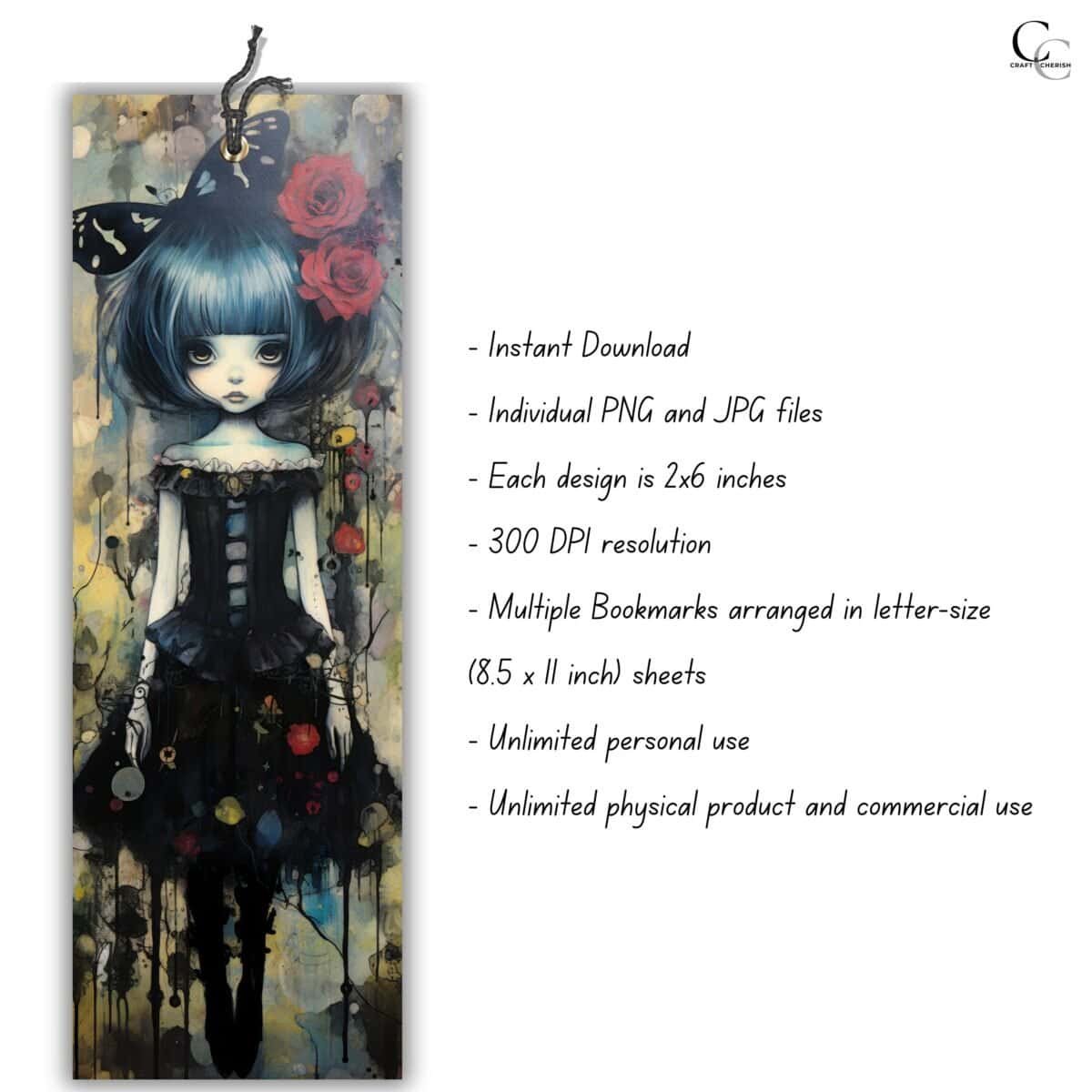 Step into the haunting world of gothic elegance with this Eerie Gothic Girl Bookmark Collection. This set includes 18 printable dark feminine portraits, each designed in a spooky, surreal style, perfect for junk journaling, Halloween crafts, scrapbooking, collage art, or mixed-media projects. Each bookmark captures the mysterious beauty of gothic women surrounded by moody textures, eerie tones, and haunting detail, ideal for anyone who loves dark aesthetics, vintage ephemera, and Halloween-inspired art.