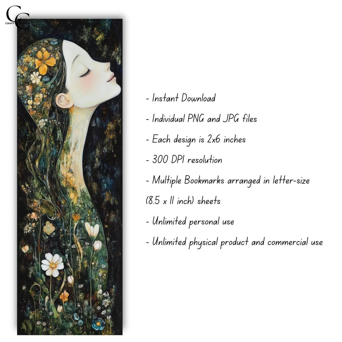 – 22 Individual Bookmarks in 2 x 6 inches (in JPGs and PNGs)