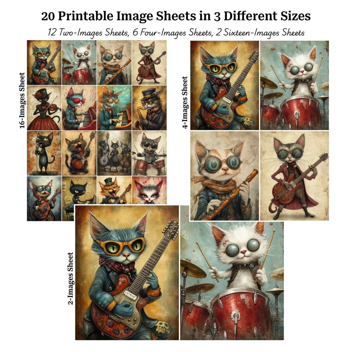 Musical Punk Cats Printable Art – Whimsical Junk Journal & Scrapbook Digital Download
