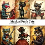 Musical Punk Cats Printable Art – Whimsical Junk Journal & Scrapbook Digital Download