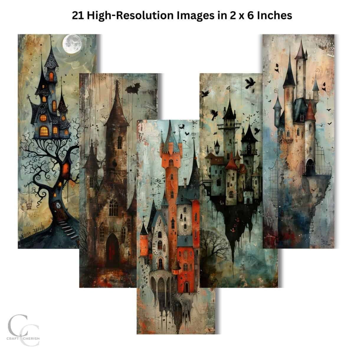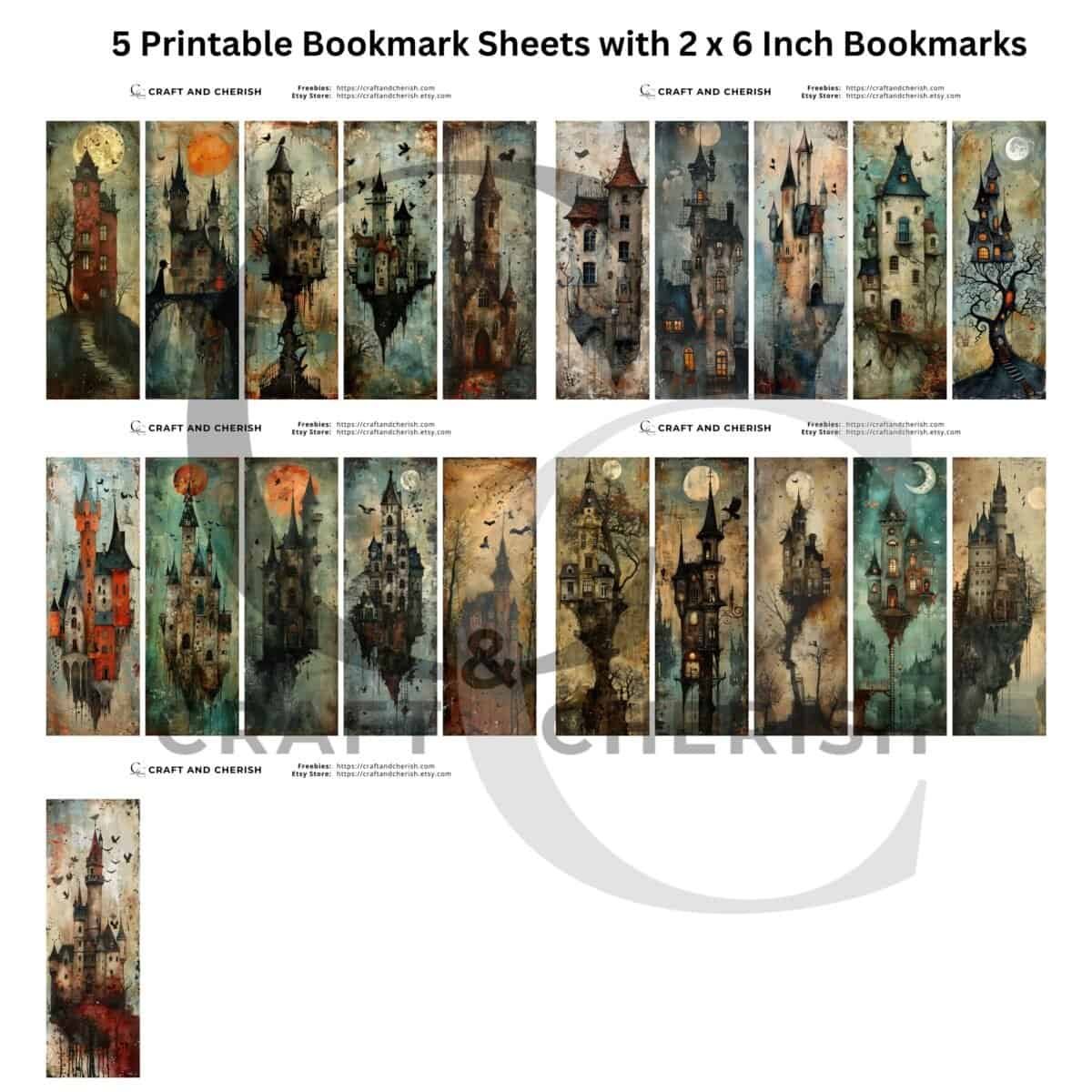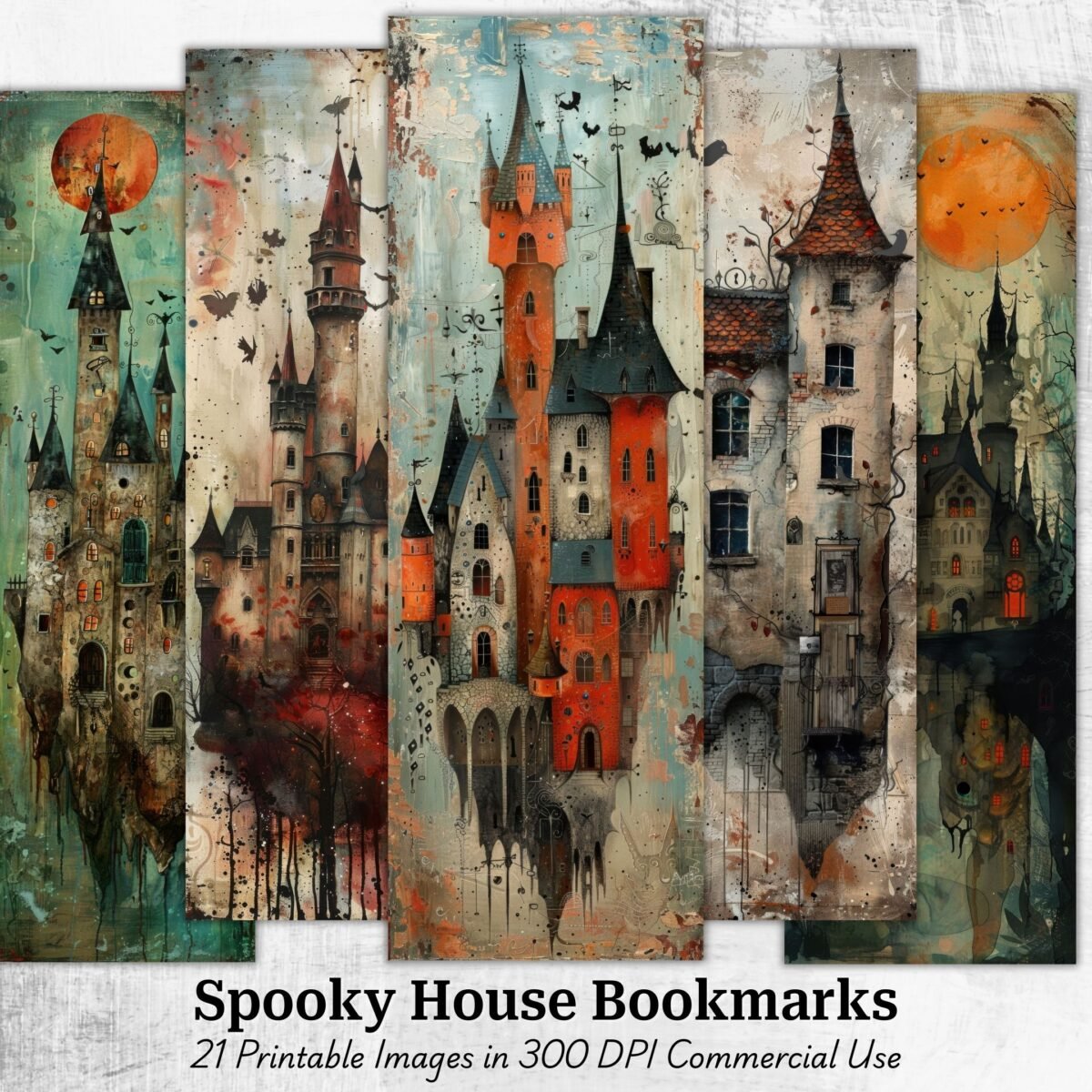 Spooky Haunted House Bookmarks – Colorful Halloween Printable Ephemera for Junk Journals & Scrapbooks