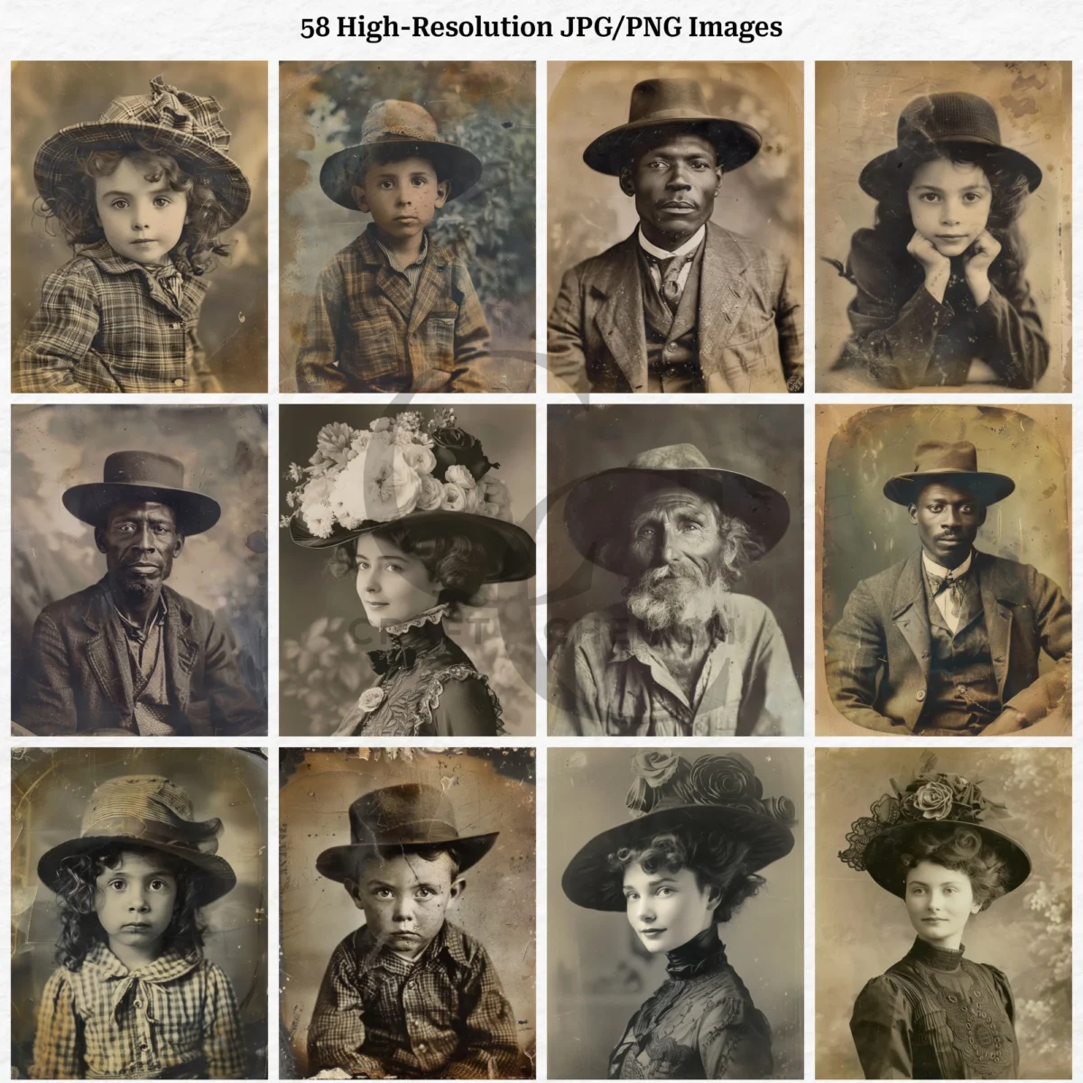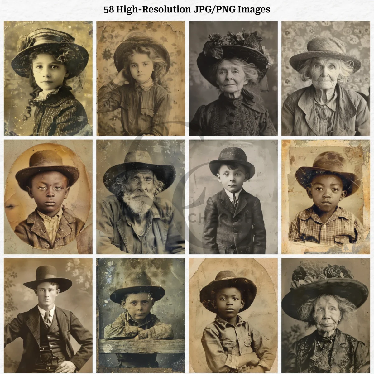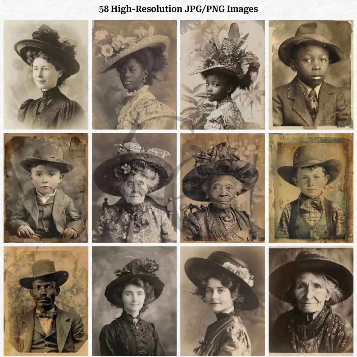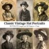 Step back in time with this elegant collection of 58 Vintage Hat Portrait Images, perfect for junk journaling, scrapbooking, collage, cardmaking, and creative paper crafting.