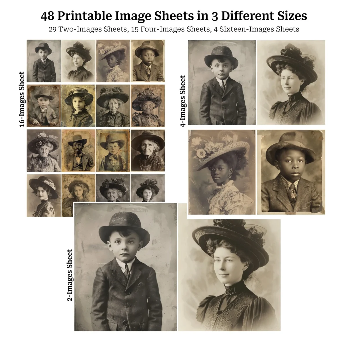 Vintage Hat Portraits – Junk Journal & Paper Craft Printables (Digital Download)