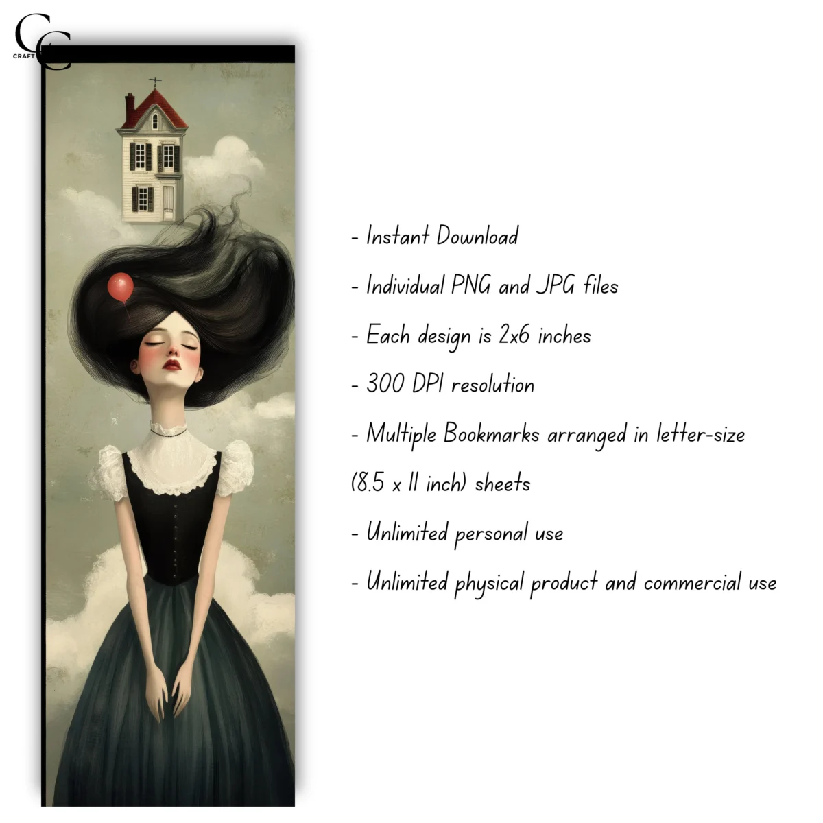 – 12 Individual Bookmarks in 2 x 6 inches (in JPGs and PNGs)